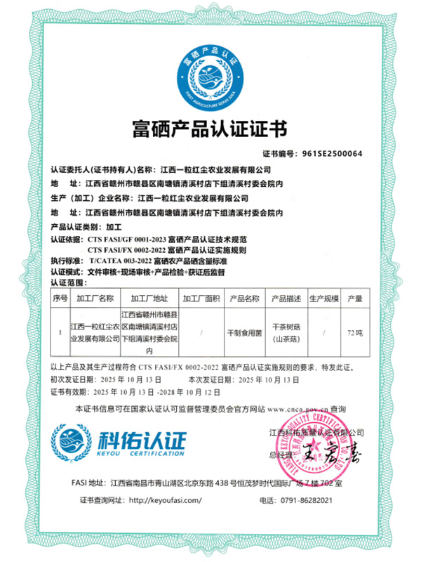 江西一粒紅塵農業發展有限公司是一家總部位于江西省贛縣的現代農業多元型企業,專注于食用菌的研發、種植、深加工貿易研教培、農文旅等全產業鏈發展。公司秉承“健康綠色共享共贏”的核心價值觀,致力于引領鄉村振興之路,旨在成為......
